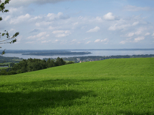 Der Chiemsee liegt in der bayerischen Landschaft Chiemgau, eines der beliebtesten Erholungsgebiete am Fuß der Chiemgauer Alpen. Der drittgrößte See Deutschlands und gleichzeitig der größte Bayerns bietet ein unglaubliches Alpenpanorama und wird auch „bayerisches Meer“ genannt. Entstanden ist der See aus den Vergletscherungen der Eiszeit vor etwa 10.000 Jahren. Ursprünglich bedeckte der See wohl eine Fläche so groß wie etwa das Dreifache der heutigen Fläche. Der größte Zu-Fluss ist die Tiroler Achen und die Alz ist der Ab-Fluss. So werden Sand und Geröll in den See gespült, der dadurch langsam „verlandet“. Bekannt ist der Chiemsee See vor allem durch die Herren- und Fraueninsel. Auf der Herreninsel stehen zwei Schlösser, das Alte Schloss mit Landschaftspark, ein ehemaliges Kloster, sowie das Neue Schloss Herrenchiemsee. Der „Märchenkönig“ von Bayern, Ludwig II., ließ Herrenchiemsee erbauen, das dem Schloss von Versailles nachempfunden ist. Auf der Fraueninsel befindet sich seit dem 8. Jahrhundert die Abtei Frauenwörth, ein Benediktinerinnen-Kloster. Diese zwei Inseln bilden zusammen mit der Krautinsel die Gemeinde Chiemsee mit der kleinsten Landfläche Bayerns.